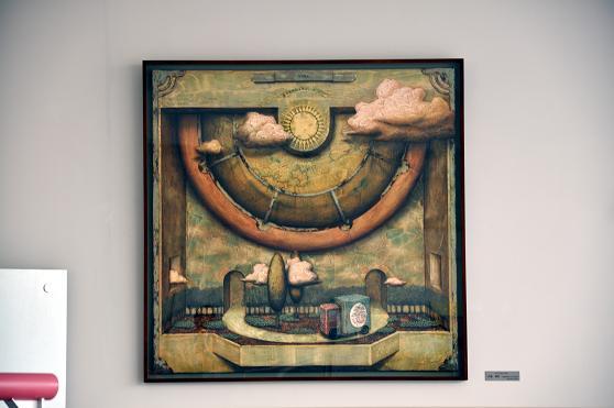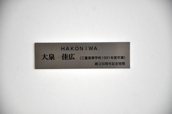 【大泉さんからのメッセージ】 91年度卒業生の大泉佳広です。この度は母校のカフェテリアに私の作品を飾っていただき、大変光栄に感じています。私は「O-WORLD」と名付けた空想の世界を目の前に具現化させることをコンセプトに作品制作を続けています。今回、寄贈させていただきました「HAKONIWA」は、デジタル時計で表されるような客観的な「時間」ではなく、自分の内側の世界で流れる「純粋な時間の流れ」を表現した作品です。「私だけの世界(箱庭)は小さいけれども、しっかりと自分の時間(歴史)を刻んでいるよ」といった感覚を感じ取ってもらえば幸いです。 最後に卒業生として一言。自分の世界(箱庭)は絶対に大切なもの(オンリー・ワン)です。でも、その良さを他の人に伝えるためには、理解してもらう努力を自分自身がしなかうてはなりません。その努力は自分の世界をさらに磨きあげることとなり、結果としてナンバー・ワンに近づいていくものだと思います。みなさん、自分の箱庭を大切に育て上げてください。