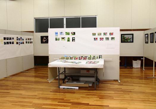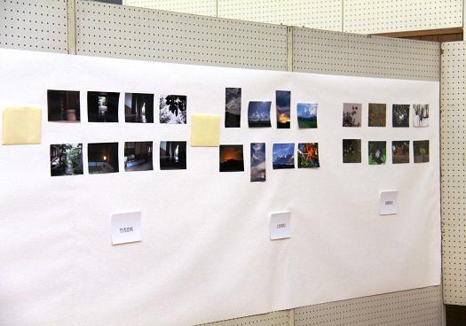 松阪市内で撮影した写真を8枚1組にまとめ、絵はがきセットをつくるという企画で、5月21日(土)の第1回、6月26日(日)の第2回に続くものです。最終回となる今回は、作品の展示と講評とスライドショーで、先生にご指導いただいた生徒や保護者の鮮やかな色彩の風景写真や、身近な草花を撮影した写真による個性豊かな絵はがきセットが展示されました。