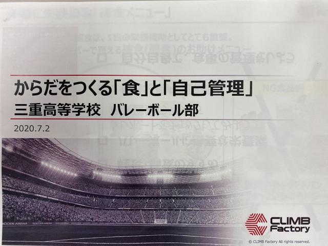 三重高男子バレー部では、「心技体」の「体」に注目してチーム作りを進めています。 今日は、東京と三重をオンラインでつなぎ、第2回の食育栄養セミナーを行いました。 怪我をしにくい身体作り、疲労を溜めない栄養補給、栄養不足の具体的な改善策など、 実践的で詳しい話に全員が集中して耳を傾けていました。 保護者さんにも参加してもらい、有意義な時間を過ごすことができました。
