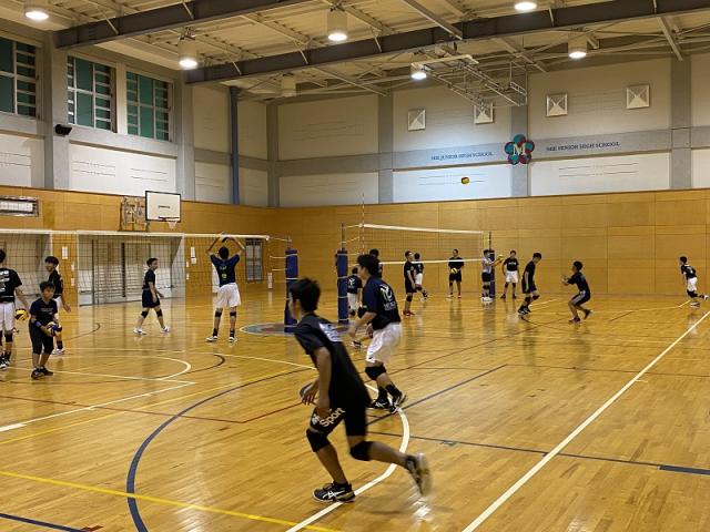 エアコン完備の体育館で高校生と一緒にバレーボールを楽しみましょう。