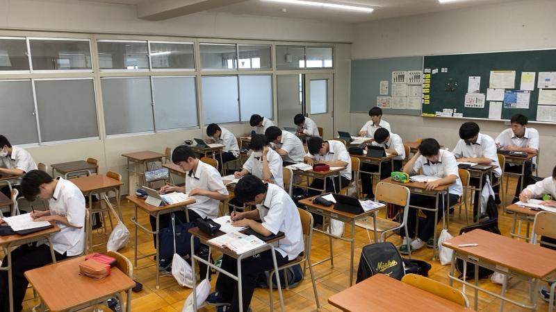 先生に質問したり上級生が教えたりしてテストに臨みます。