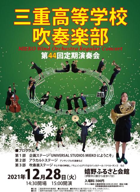 本校吹奏楽部の第44回定期演奏会が12月28日に嬉野ふるさと会館にて開催いたします。