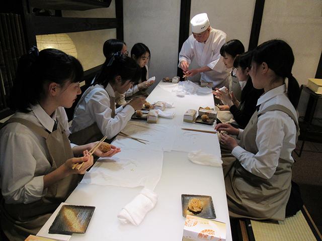 5月26日(金),茶道部員15名が研修のために京都を訪れました。 茶道資料館では呈茶席の後,館内を見学しました。 和菓子教室では,見た目の美しさと食べやすさに工夫があることに気付きました。 部員同士の交流も出来,楽しい一日になりました。