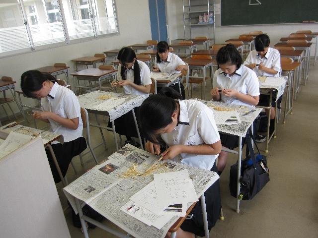 7月31日(月),茶道部員6名で茶杓削りをしました。 始めるとすぐに全員が集中して取り組みました。 出来上がったものは個性豊かに仕上がり,様々な形になりました。 夏休み中に布で茶杓入れを作り,9月の学園祭で使用したいと考えています。