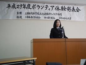2月18日(日)四日市市文化会館で発表会が行われました。この発表会は、今までのボランティア経験を語り、学び合うと言う目的で行われています。本校からは、高校2年生3名が参加し、見事3名全員が賞をいただきました。自分の言葉で自分の意思をたくさんの人の前で表現できた三人を誇りに思っています。 2位 中日新聞社賞 (5B ?井万梨子) 3位 日本福祉大学奨励賞 (5B 積木彩乃) 4位 ボランティア部門会長賞 (5D 松岡和奏)