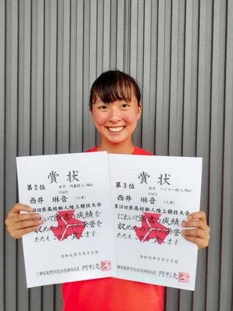 西井 琳音が円盤投女子を41m33で二位、ハンマー投女子を41m21で自己ベスト三位