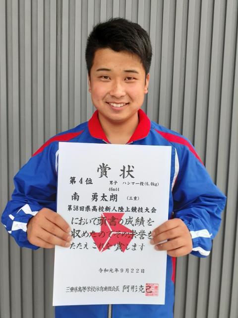 ハンマー投 南 勇太朗 (2S3-明和中) 46m44 自己ベスト、四位