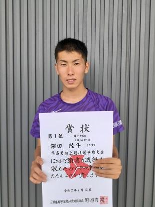 深田 陸斗 (3S5-多気中) 決勝 1分57秒44 一位