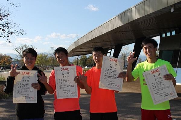 ゴメス ニコラス、松前 楽、深田 陸斗、瀬古 陸斗が男子4×400mリレーを決勝 3分20秒99で一位に入賞。