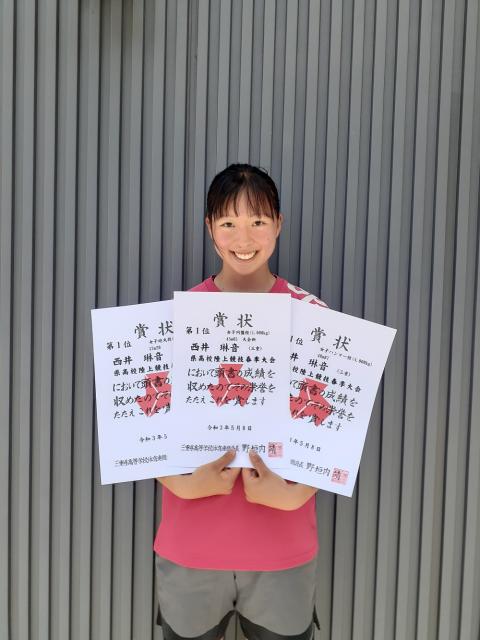 上記大会におきまして、西井 琳音が女子円盤投-優勝(記録:45m05、大会新記録、自己新記録)、女子ハンマー投-優勝(記録:48m87、自己新記録)、女子砲丸投-優勝(記録:12m20、自己新記録)の三冠を達成することができました。他にも瀬古 陸斗が男子400m決勝において48秒33で優勝(準決勝48秒12、自己新記録)、川村 歩士が男子800m決勝を2分02秒10で三位に入賞しました。また、リレー競技では最終種目の男子4×400mR(第一走者:中野 秀太、第二走者:松前 楽、第三走者:藤原 光汰、第四走者:瀬古 陸斗)において、3分18秒08の大会新記録で優勝することができました。