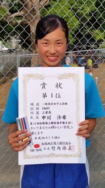 また中川沙希が一般高校女子三段跳を、記録10m63で1位に入賞した。
