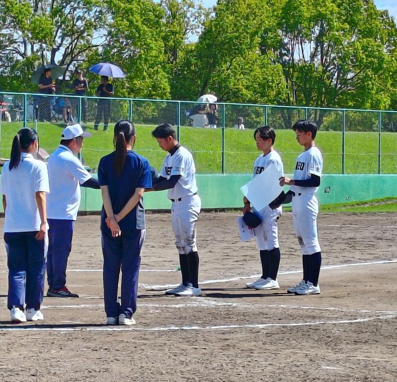 9月23日火曜日の準決勝でシード校の高田高校を4−2で下し、決勝進出しました。9月27日に決勝戦が行われ、宇治山田・鈴鹿・大橋学園の連合チーム相手に3回に先制しましたが、その後逆転を許し2−6で敗れました。