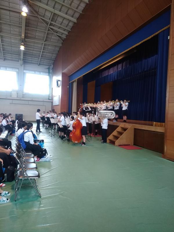 今日が、夏季オープンスクールの初日である。中学校3年生とその保護者、総勢700名の方々に来校していただいた。9時半からの開始に先立って、吹奏楽部の演奏とダンス部の演技が体育館で披露された。吹奏楽部は甲子園の応援マーチや校歌などを、また、ダンス部は、今夏の全国大会で演じる作品を披露し、大きな拍手を浴びていた。