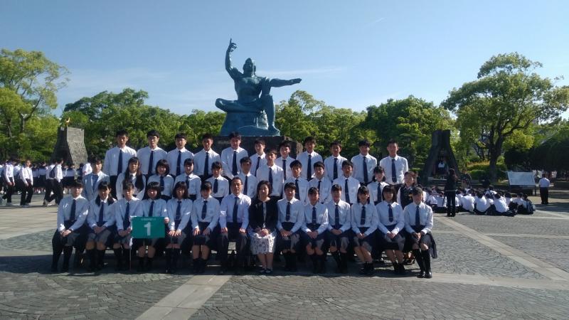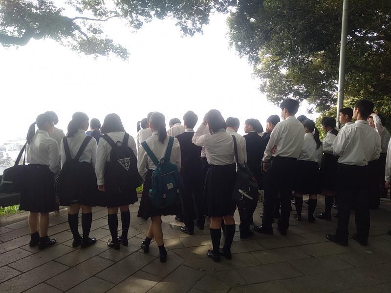 修学旅行2日目の今日は、長崎での平和学習と班別自主活動である。平和祈念像前で写真撮影の後、平和公園内に残る戦禍についてガイドさんの説明を真剣に聞いていた。その後原爆資料館を熱心に見学していた生徒たちには、現地ての心を揺さぶる体験しっかりと記憶に留めることを願う。
