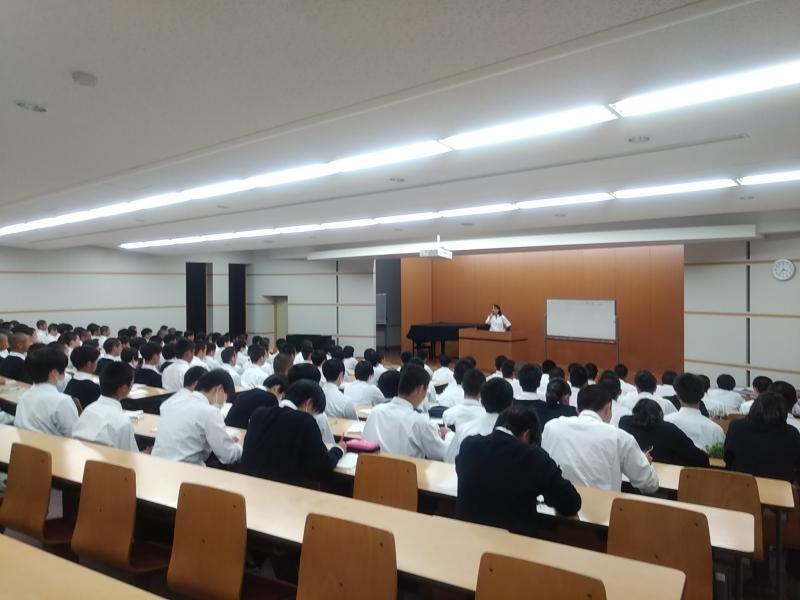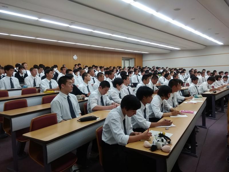 本日放課後、アスリートプログラム第2回を実施した。「大会に向けて〜メンタル〜」と題して、元剣道全日本女子チャンピオンの尾上菜智教諭、みえコーチアカデミーの受講者である中村純一郎教諭と村田真紀乃教諭、合計3名の教員があわせて1時間程度講義した。大会前の心の準備、大会に臨む心構え、メンタルが強いとはどういうことか等々、講師の体験も交え具体的に話をされた。県総体を10日後に控えており、スポーツクラスの生徒160名は、質疑も交えつつメモを熱心に取りながら、受講していた。私も一緒に聞いていたが、大会の目標設定について、現在の自分の実力を分析したうえ、必ず達成できる目標、達成可能な目標、達成したい目標と3つに分けることなど、わかりやすく話されており実によく心に残る内容であった。大会では、それぞれの種目で最高のパフォーマンスを発揮できるよう、日々の練習に取り組み心技体を鍛えてほしい。