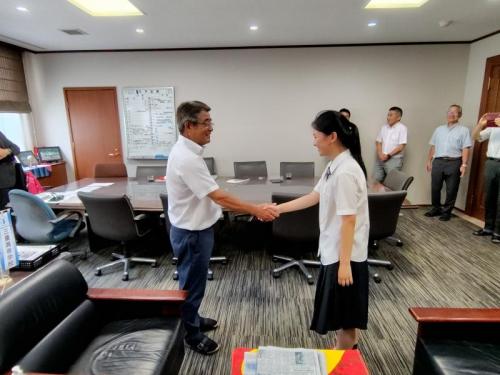 【国際教育】留学生が帰国前に学校長を訪問し、感謝の気持ちを伝えました