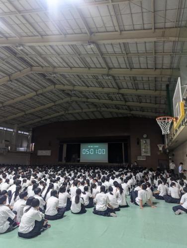 午前中は、各クラスが制作したユニークな動画を披露するコンテスト「Mtube」が行われ、笑いや驚きに包まれる時間となりました。その後は、全校生徒が参加する「クイズ大会」で大いに盛り上がりました。