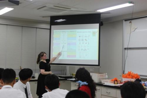We invited several ALT (Assistant Language Teachers) who teach English in Mie Prefecture. The teachers came from many countries, including Jamaica, the United Kingdom, South Africa, the United States, and Australia. Students were excited to hear different accents and stories from each country.