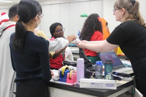 当日は、三重県内で英語教育に携わる複数のALT(外国語指導助手)の先生方を講師に迎えました。先生方の出身は、ジャマイカ、イギリス、南アフリカ、アメリカ、オーストラリアなど世界各地にわたり、それぞれの文化や英語の発音の違いにも自然に触れることができました。