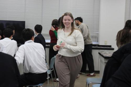At first, many students felt nervous speaking English. However, they soon relaxed and began communicating actively with the teachers and their classmates.