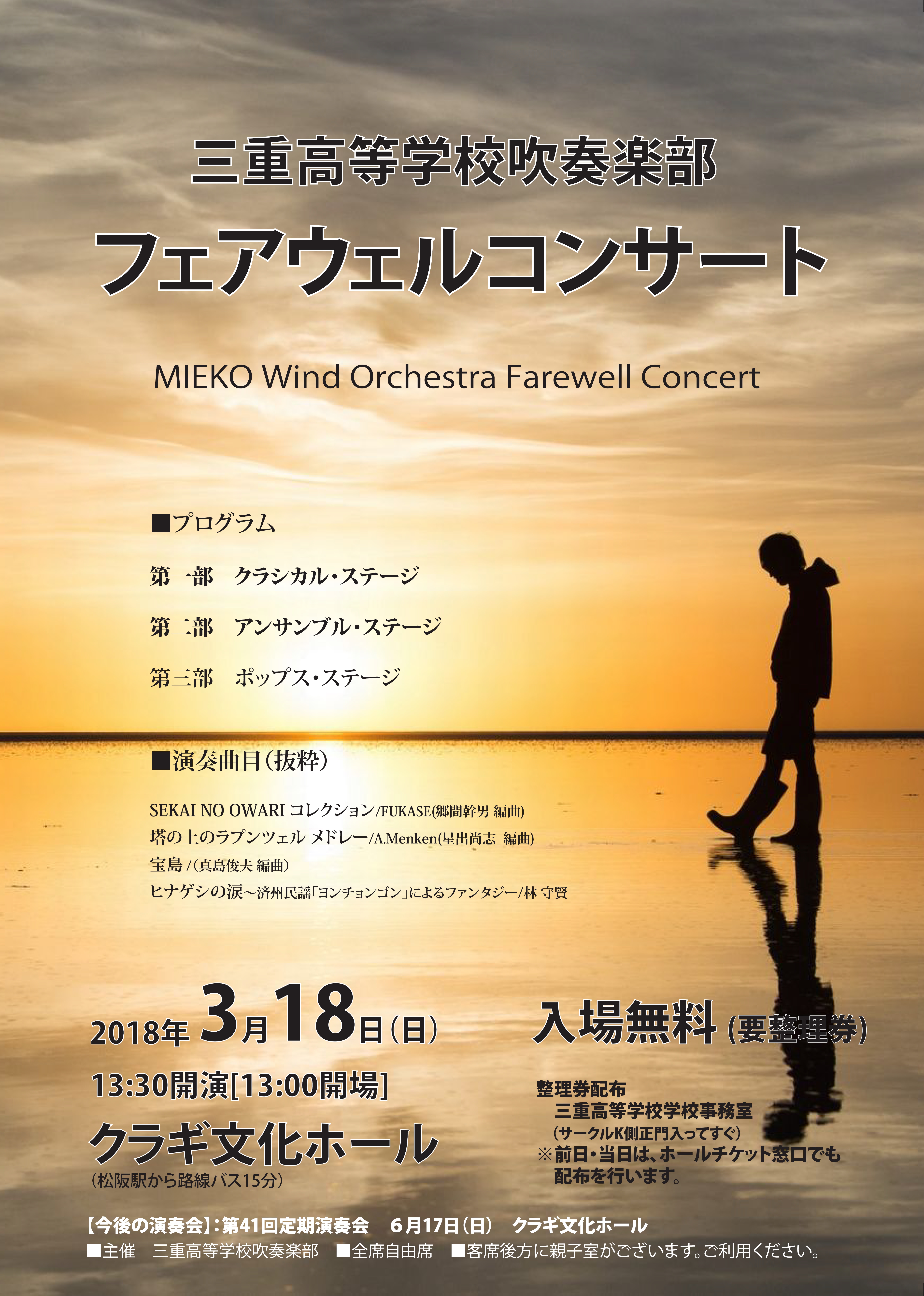 整理券配布場所:三重高等学校事務室、三重中学校事務室