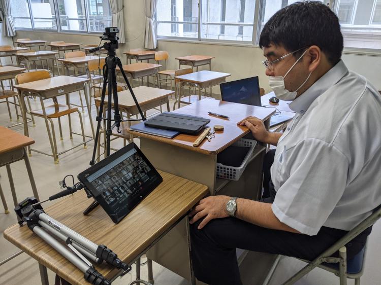 9月1日に、学年ごとに時間差登校をし、放送での始業式をしました。そして、12日までの在宅学習のためのiPadの設定準備をしました。 9月2日、google meetによるオンラインSHRが始まりました。朝、担任の先生と顔を合わせて自宅での通信状況の確認をしました。