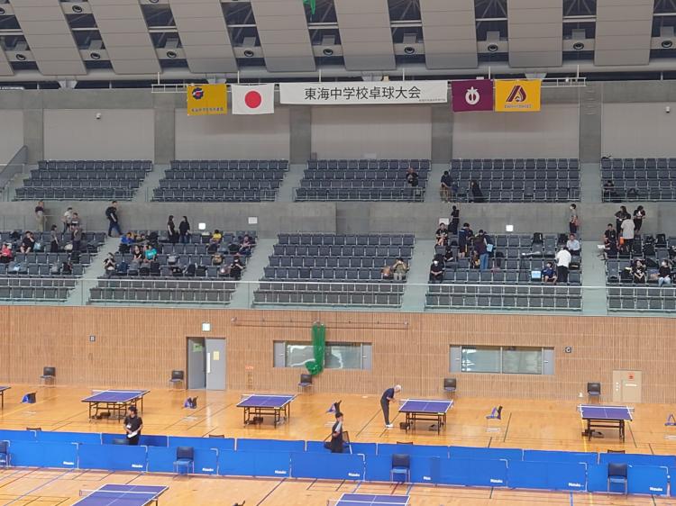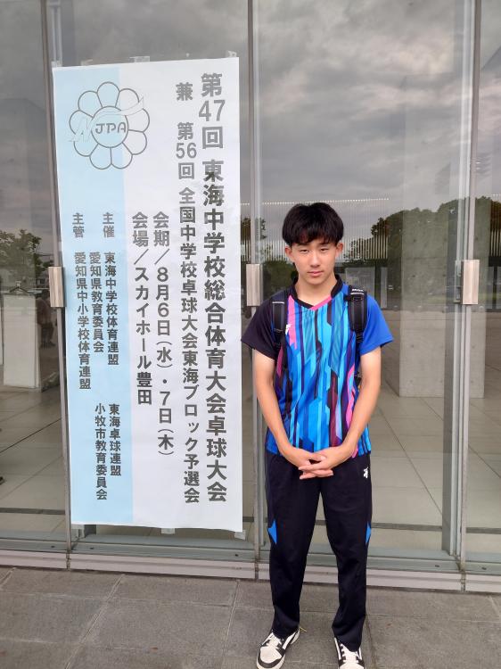 8月7日(木)に愛知県豊田市にあるスカイホール豊田にて第47回東海中学総合体育大会卓球大会が行われました。結果は善戦したものの1回戦敗退でしたが、最後まで諦めずにプレーする姿に3年間の成長を感じました。