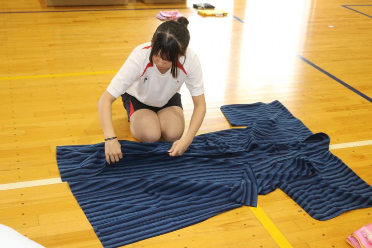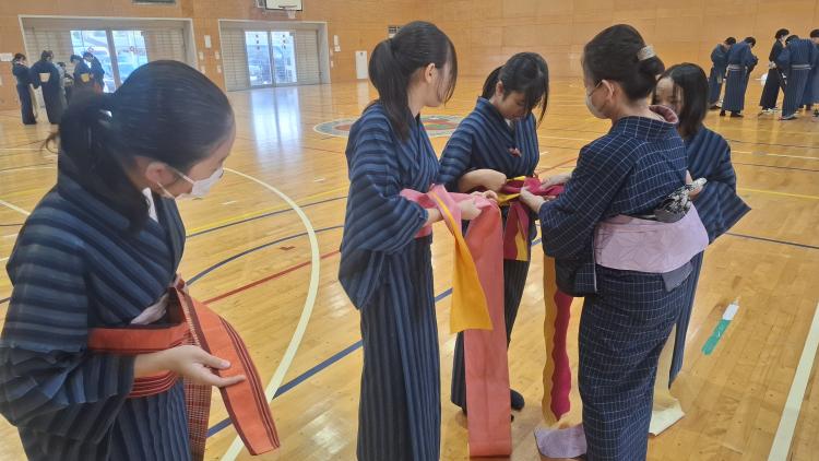 中学2年生は、10月29日(水)と11月8日(土)に、家庭科の特別授業で「和装体験講座」を受講しました。