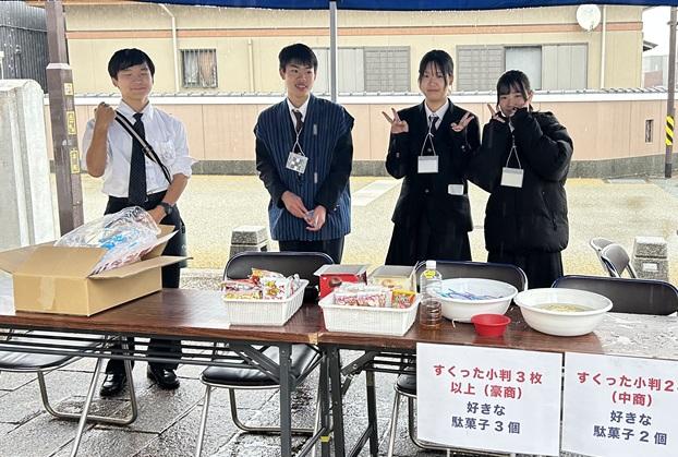 当日は雨でしたが、生徒たちは積極的に来場者の方々に声をかけ、地域の人と交流していました。祭りを楽しむとともに、人の役に立つ喜びを感じ、充実した時間を過ごすことができました。
