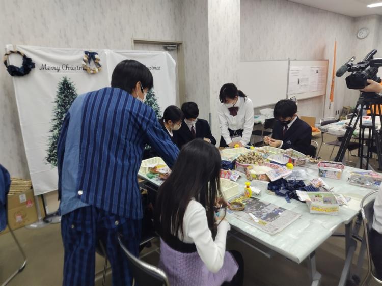 三重中高からは、総勢約100名以上の生徒が部活・ボランティア等で運営に参加し、たくさんの企画を担当しました。科学技術部は貝ともめんのワークショップや松阪もめんについてのポスター展示を行いました。合唱部は、ステージ発表と商店街を巡って飛び入り合唱を行いました。また中高有志でイベントの案内係を担当しました。さらに今年は新しく商店街をめぐるスタンプラリーを中学生が企画しました。