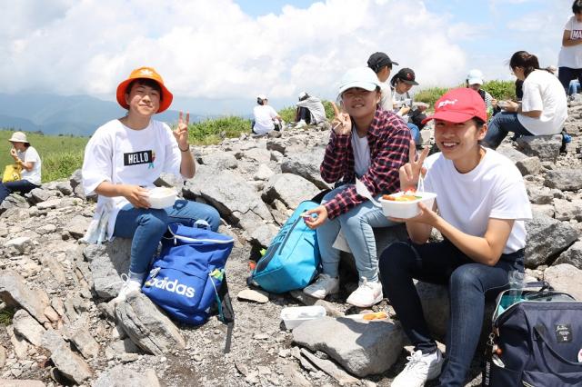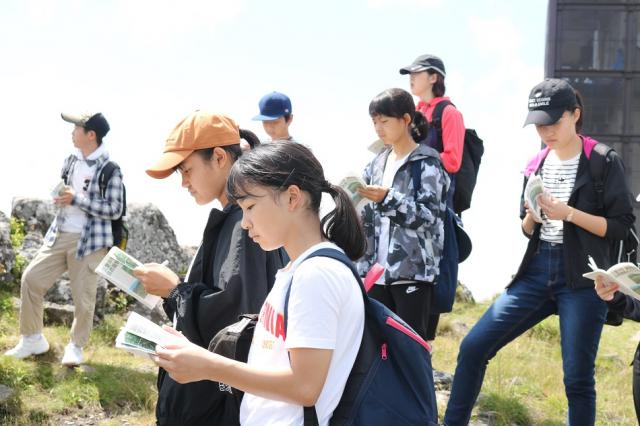 植物をチェックしつつ、6キロ弱のトレッキングを行いました。岩に足を取られたり、ミツバチに悩まされたり、たくさんの方々とあいさつを交わしたりと、日ごろ体験できないことをたくさん経験しながら129人全員で完歩することができました。