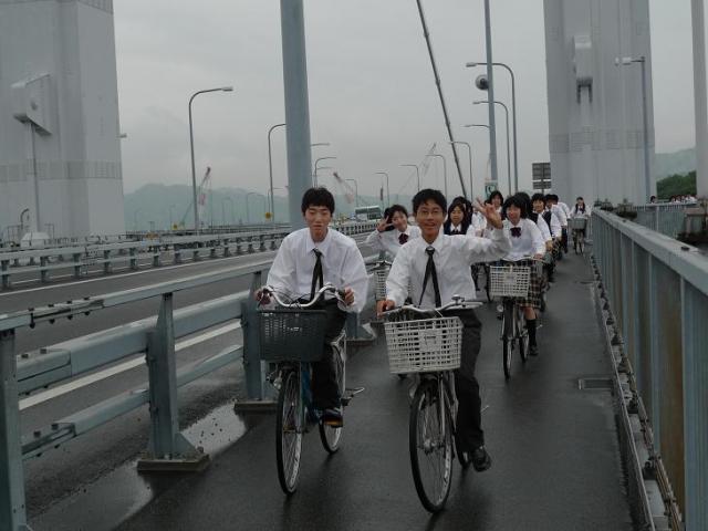 楽しみにしていた来島海峡大橋のサイクリング。奇跡的に雨が上がりました。