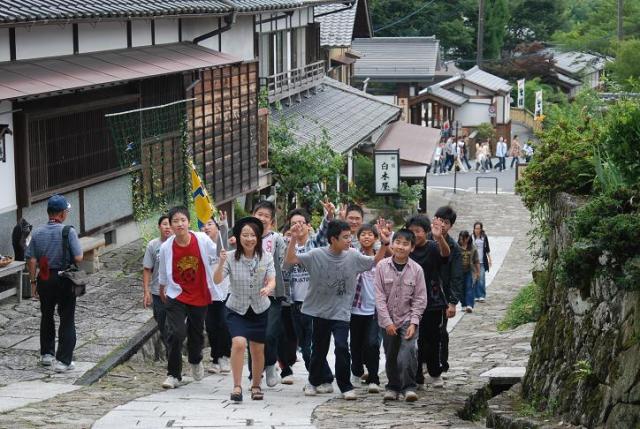馬籠宿では旧街道の坂道を体験し、島崎藤村記念館の見学を行いました。 |