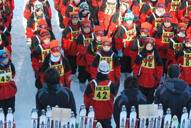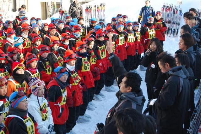 スキー練習会を待ちきれなくて、みんなが予定より40分も早く開校式の会場に集まりました。インストラクターの先生方があわてて会場に駆けつけるほどでした。