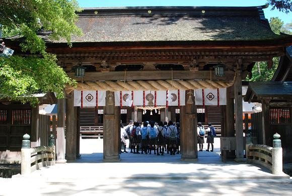 瀬戸内のすばらしい風景を眺めながらしまなみ海道を進み、大山祇神社に到着しました。全国の国宝および重要文化財に指定されている武具の約8割が収蔵されている宝物館では源義経が奉納した鎧を目の当たりにして思わず「これ本物?」との声。事前に平家物語で学んだ世界に一時浸ることができました。(残念ながら撮影禁止でしたので館内の写真はありません。)