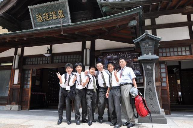 道後温泉本館で散策の疲れを癒したグループも |