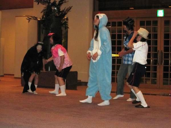 夜は恒例の「夕べの集い」。有志による工夫に富んだパフォーマンスを楽しみました。