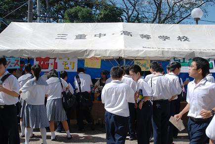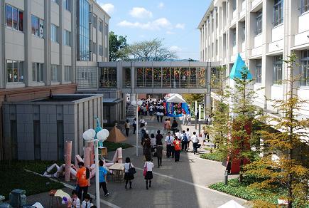 中庭には2年生の世界遺産のミニチュア、1年生の創立50周年のモニュメントが並びました。