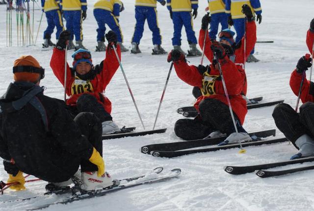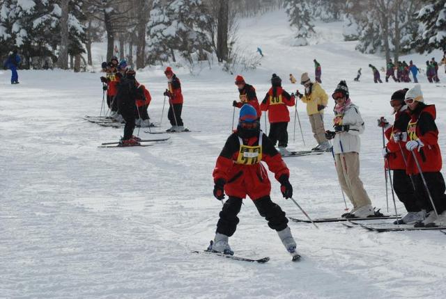 午後1時から3時まで午後の練習時間です。残念ながら太陽は顔を隠してしまいましたが、午前中に学んだ基礎を思い出しながら実践に入り、すべての班がリフトに乗りました。上級班は難易度の高いコースにチャレンジし、雪煙を上げて滑走を楽しんでいました。初心者の人たちもインストラクターの方々の親切なご指導の元に、それぞれが自分の力で無事に下まで滑りきりました。リフトを使うようになって一段と楽しくなった様子で、「先生、むっちゃ楽しい」「もう一回リフト乗ってくる」などと、頬を真っ赤にしながら元気な声を響かせていました。
