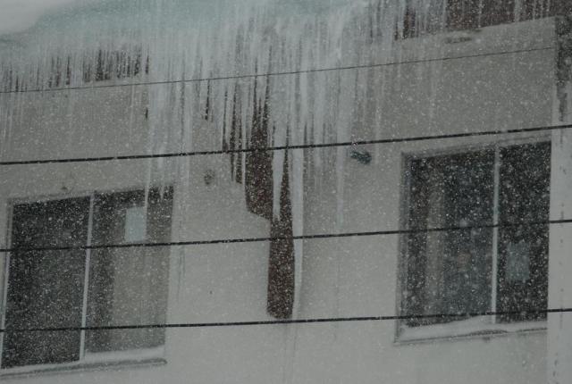 今夜は(現在午後8時)ずっと雪が降っています。明日の朝には雪がやんで太陽がのぞいてくれるとよいのですが。ホテルの外のつららもますます長くなりそうです。