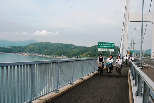 ![]() 来島海峡大橋を渡るサイクリング。さあ出発 |