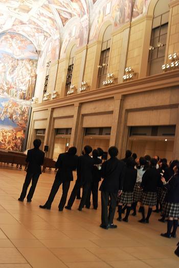 ![]() システィーナ礼拝堂で贅沢な記念撮影 |