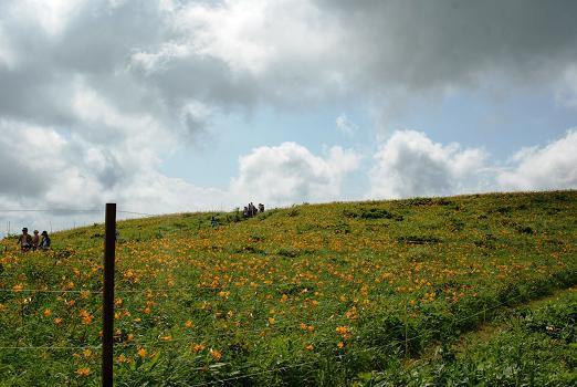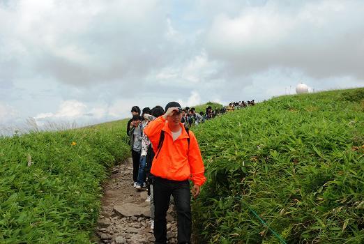昼食後は高原の景色を楽しみながら車山肩までハイキングです。ゴールの車山肩にはニッコウキスゲの群生場所があり、一面の黄色に目を見張りました。