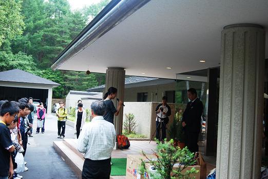 しかし夜中に雨が降った様子で、足下の具合が心配です。生徒たちは荷物をまとめ、登山に向う気力満々で朝食をいただき、セミナーハウスの閉会セレモニーも済ませ、一路北横岳に向って出発しました。ところが山に近づくにつれ霧が深まり、ロープウェイ乗り場に到着したときにはとうとう雨になってしまいました。残念な気持ちは一杯でしたが、ここでは状況を正しく把握し決断をする勇気を経験しました。自然を侮ることは許されません。そこで、あらかじめ考えてあった雨の日のスケジュールに気持ちを切り替え、諏訪湖畔の「 北澤美術館 」に向いました。ガラス工芸品中心の新館、日本画中心の本館共に、学芸員の方に鑑賞のし方や美術品詳しい説明をしていただき、大変深く芸術に触れる時間を過ごすことができました。美術作品の鑑賞のポイントを少し知るだけでも、美術館の楽しみ方が大きく変わった生徒も多かったようです。「緑色だけでもいろんな色があるなあ。」「この絵かわいいよねえ。」と話し合う姿を見ていると、この経験をきっかけに日常でも「感動することの楽しさや大切さ」をきっと深めていくんだろうと思いました。