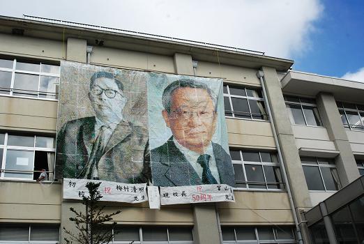 ![]() 1年生の50周年を記念する巨大モザイクアート |