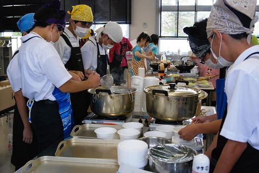 ![]() 調理室は模擬店の調理で大わらわ |