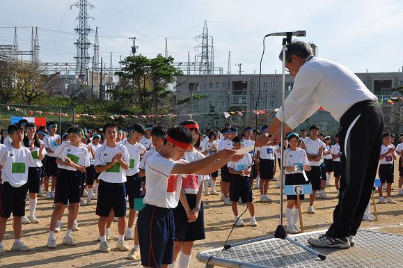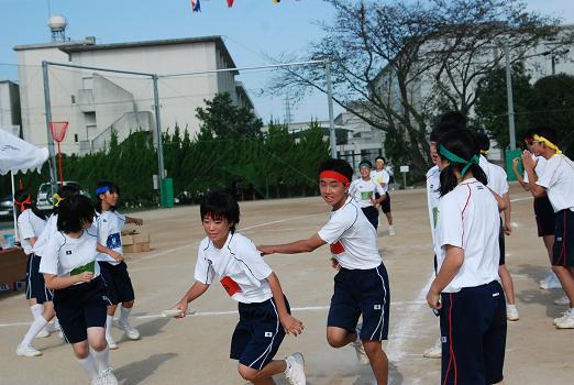 10月4日(火)、拡張されたグラウンドで生徒会主催の体育祭が行われました。秋晴れの空の下、伝統の「障害物借物競走」でスタートし、締めくくりのチーム対抗リレーで最高潮となりました。学年縦割りの10チーム対抗戦で3年生がリーダーシップをとって運営するという伝統が見事に受け継がれ、終始協力的でなごやかな雰囲気で行われました。この伝統はこれからも三重中の誇りとして受け継がれていくことでしょう。