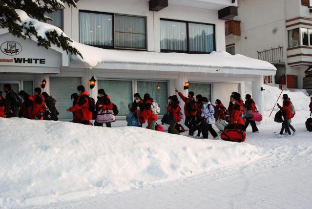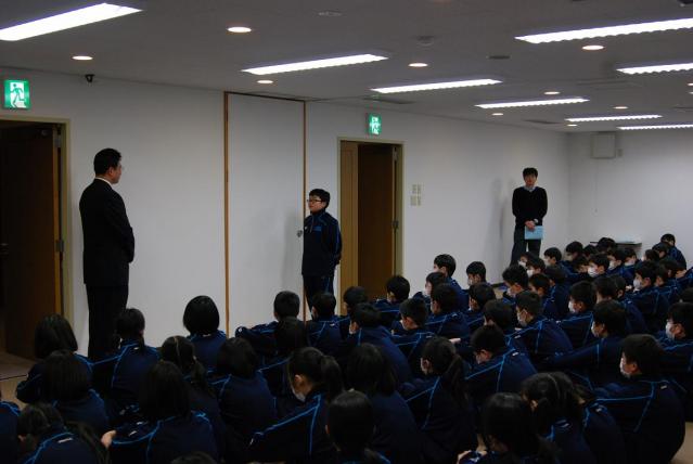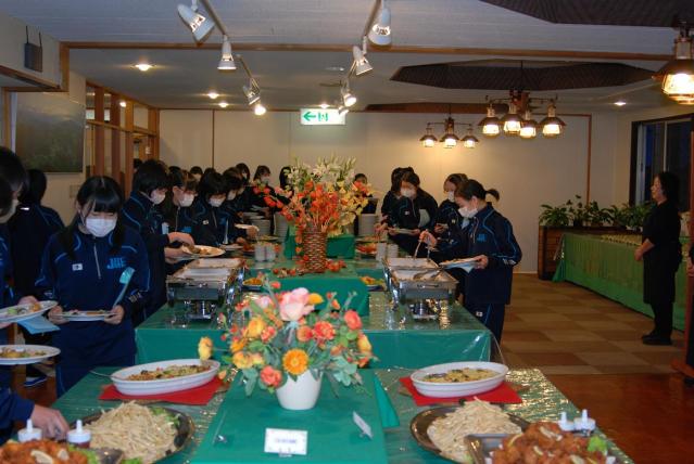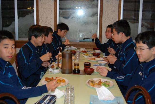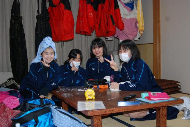 1月24日〈火〉いよいよスキー練習会が始まりました。松阪から7時間かけて志賀高原タンネの森一の瀬スキー場に到着しました。バスの中は各クラスのレクリエーション委員の趣向を凝らしたレクリエーションで楽しみました。生徒たちはホテルで入所式を行い、その後バイキングの夕食を楽しみ、翌日への英気を養いました。