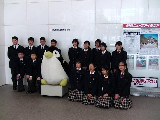 朝日新聞名古屋本社は15名という最も少ない定員による見学でした。最初に記念写真を撮り、その写真をもとにオリジナルの「見学記念新聞」製作を体験しました。その後担当の方から説明があり、記者が日本のみならず世界をまたにかけて記事を集め、新聞に字が躍るまでの大変な苦労を知ることができました。今度は実際に編集局を見てまわり、さまざまな部局に分かれて新聞が製作されている場面を目の当たりにすることができました。最後の質疑応答の時間では、生徒から新聞記者の適性や喜びなど次々と質問があり、担当の方は経験を踏まえ、丁寧に答えていただきました。現場の緊張感、厳しさを感じることのできる有意義な見学となりました。