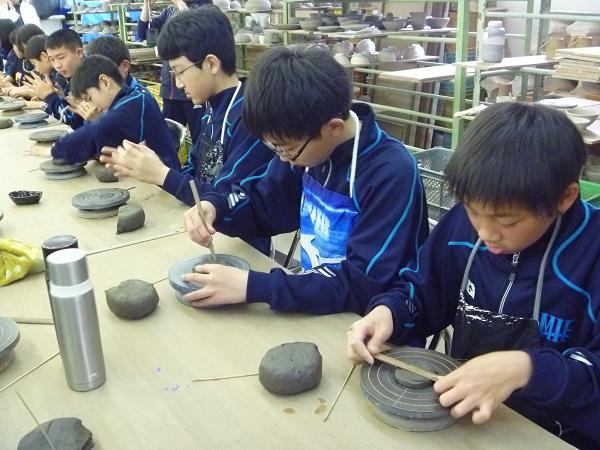 2年生の遠足は日本を代表する陶芸の郷、信楽への陶芸作りです。目的地の信楽陶苑たぬき村に到着後、まず登り窯の見学を行ないました。その後作業場で、およそ1時間かけて、手ひねりの作品を作りました。生徒たちは、世界でたった一つの自分の陶器作りに、熱心に取り組んでいました。作品は、このあと乾燥され、釉薬をかけて焼かれます。完成した作品が生徒の手に届くのは、6月中旬の予定です。